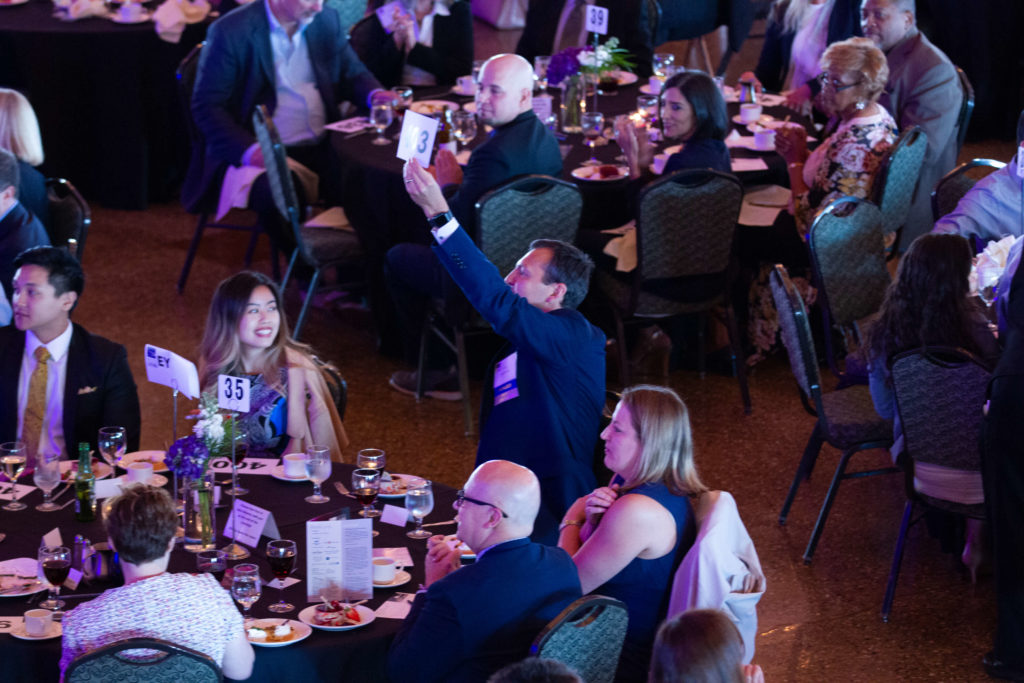 Bidder raises his card to make a donation at the 2019 Annual Living Gala.